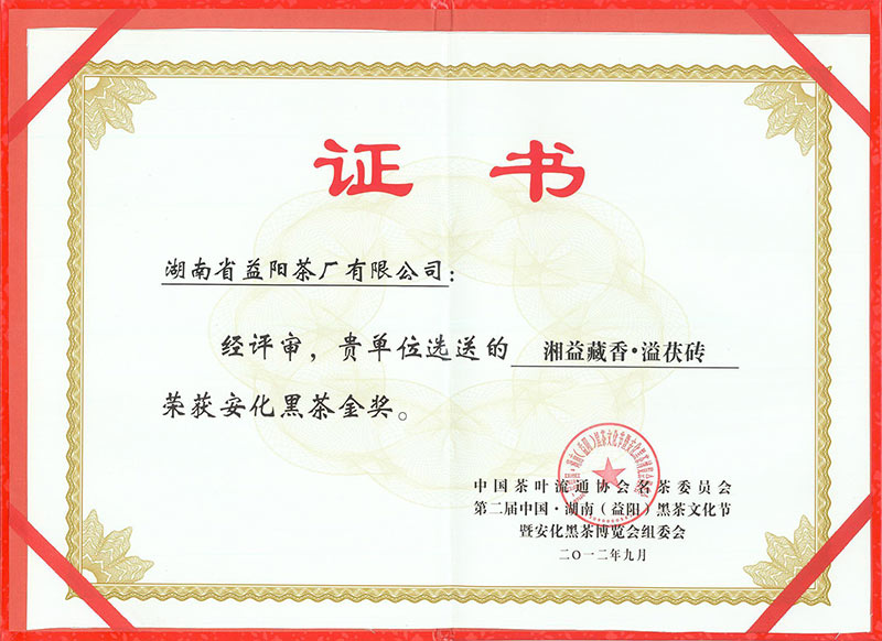 第二屆中國(guó)湖南黑茶文化節(jié)金獎(jiǎng)(藏香·溢)