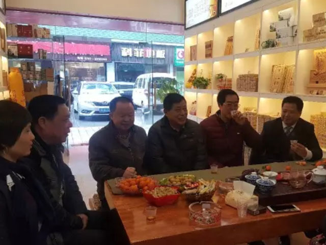 近日,政協(xié)安化縣委員會原主席、安化縣茶業(yè)協(xié)會會長李俊夫先生一行在公司常務(wù)副總經(jīng)理徐迪軍先生的陪同下來到湘益茯茶專賣店視察。專賣店負(fù)責(zé)人諶如紅女士說道:“我自己是地地道道的安化人,以前也從事茶葉行業(yè)的相關(guān)工作。在一次機(jī)緣巧合下我接觸到了湘益茯茶這個品牌,當(dāng)時就覺得這茶不錯,在當(dāng)?shù)氐钠放浦纫哺?,我于是就開始從多方面的了解湘益茯茶這個品牌,到最后,我也成了湘益茯茶的一員,把湘益專賣店開在了自己的家鄉(xiāng)安化。在公司領(lǐng)導(dǎo)及縣領(lǐng)導(dǎo)的大力支持下,本店近期銷售情況良好,進(jìn)店品茶的消費者很多,有很多慕名而來的湘益粉絲,茯茶氛圍很濃,我對湘益茯茶在安化生根發(fā)芽充滿信心?!崩羁》驎L說:“湘益茯茶是黑茶行業(yè)的一個大品牌,此次來安化開設(shè)專賣店,對安化黑茶行業(yè)的健康發(fā)展起到了積極的推動作用?!惫境?wù)副總經(jīng)理徐迪軍先生說:“安化,是大眾茶文化濃厚、湖南黑茶交易與集散的重鎮(zhèn)。作為湖南黑茶面向全國乃至全世界的重要窗口,也一直是湘益茯茶十分重要的區(qū)域市場,公司將大力支持安化湘益專賣店的發(fā)展,也希望安化縣相關(guān)領(lǐng)導(dǎo)、茶業(yè)協(xié)會以及茶界同仁能夠一如既往的關(guān)注湘益,為湘益在安化迅速發(fā)展給予指導(dǎo)和幫助。”