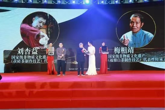 在茶香悠揚的茶藝表演之后,“中國好茶,黑白對話”高峰論壇特制紀念茶正式發(fā)布,成為與會嘉賓關(guān)注和熱議的話題。國家非物質(zhì)文化遺產(chǎn)茯茶制作技藝代表性傳承人劉杏益大師為大家講解了研發(fā)制作理念,其健康、高品質(zhì)的特點贏得大家的高度認可。隨后,劉仲華院士與兩位大師共同在茶上簽名,將現(xiàn)場氣氛推至高潮。