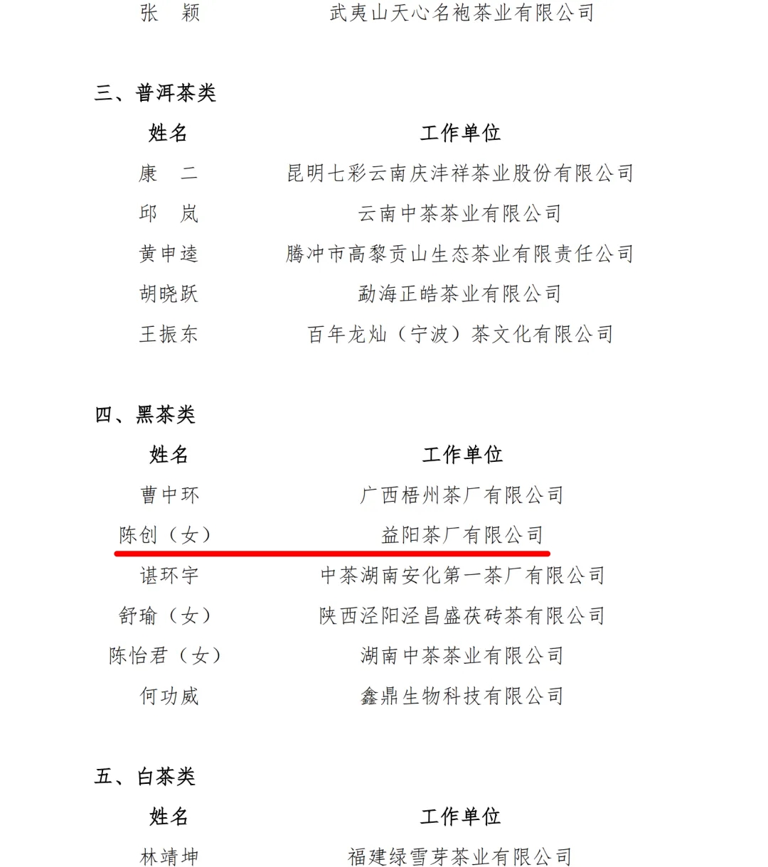 近日中國(guó)茶葉流通協(xié)會(huì)公布了2025“國(guó)茶人物·制茶大師”第十批調(diào)查結(jié)果及2025“國(guó)茶人物·制茶能手”第五批調(diào)查結(jié)果。其中,益陽(yáng)茶廠有限公司陳創(chuàng)同志獲評(píng)“國(guó)茶人物·制茶能手”(黑茶類)。